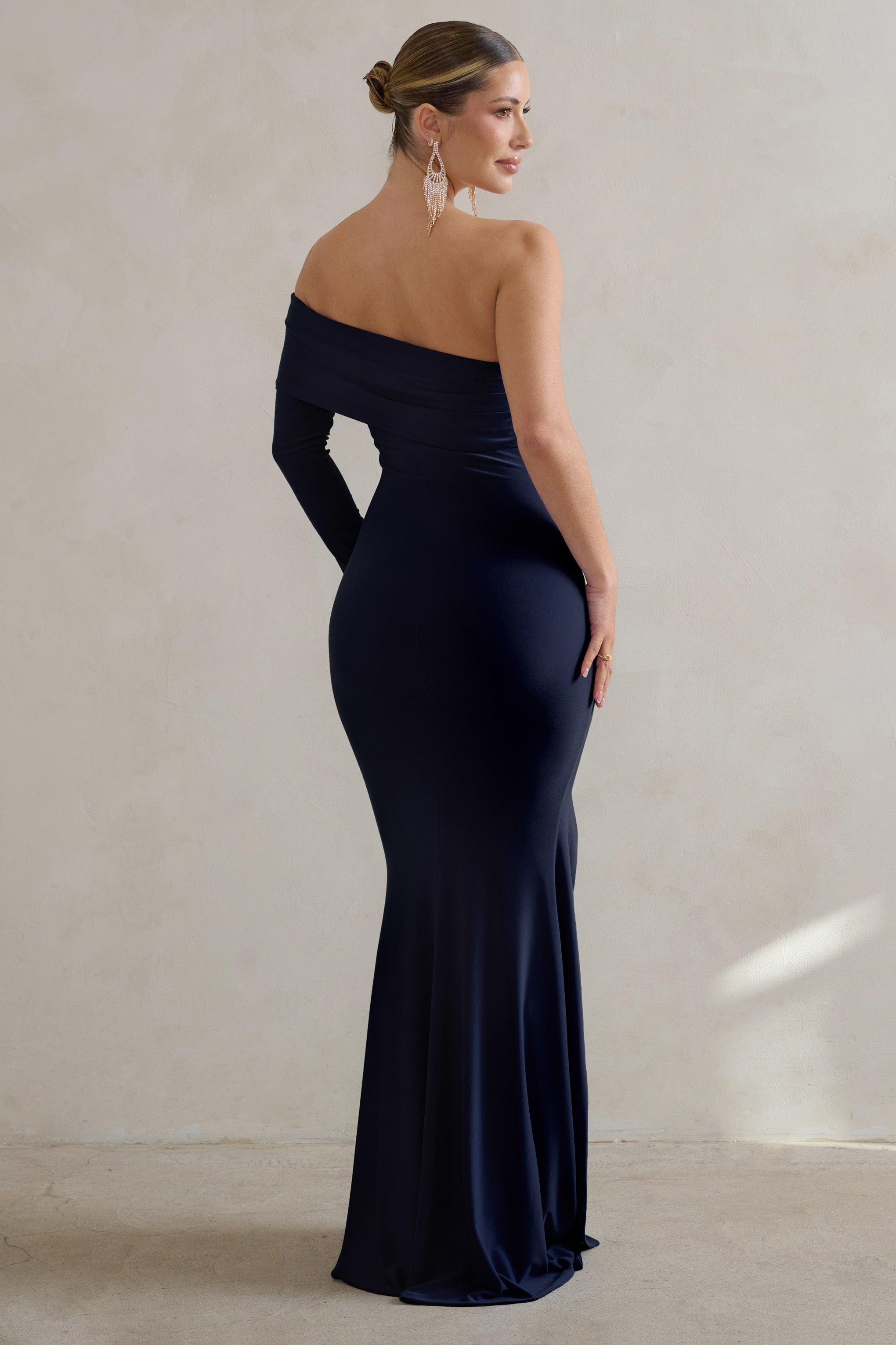 Bir Adım Önde | Lacivert Uzun Kollu Sırt Dekolteli Balık Etek Maxi Elbise